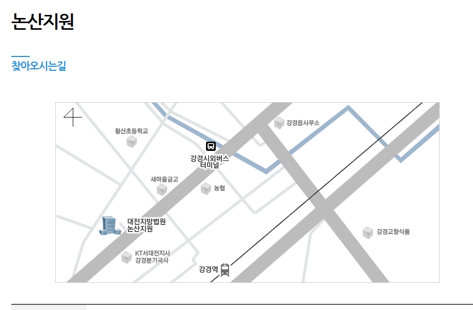 2. 철도 이용시 강경역 하차 법원까지 도보로 5분 소요